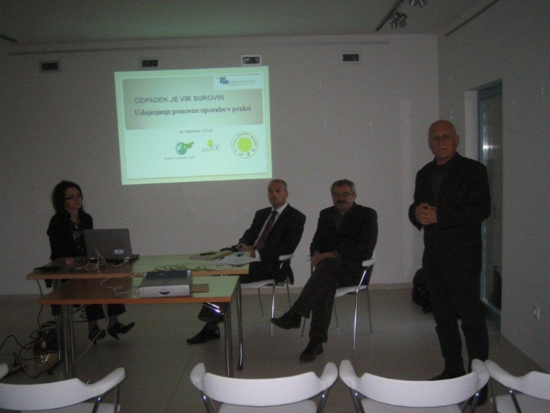 Dr. Marinka Vovk, raziskovalka v Centru ponovne uporabe Rogaška Slatina, je udeležencem okrogle mize predstavila prvo slovensko izkušnjo s ponovno uporabo predmetov in materialov v njihovem centru, ki je že vključen v evropsko mrežo tovrstnih centrov. Različne predmete, predvsem pohištvo, delujoče gospodinjske aparate, drugo opremo za dom, knjige, računalniško opremo, športno opremo, igrače in druge še uporabne predmete zbirajo od vrat do vrat, jih v centru z malimi popravki usposobijo za ponovno uporabo in jih potem za minimalno ceno prodajo novim uporabnikom. Zaenkrat imajo štiri redno zaposlene in omogočajo izvajanje družbeno koristnega dela, namen centra pa je tudi usposabljanje različnih mojstrov in promocija obrti. V Sloveniji naj bi po tem vzorcu nastalo še sedem centrov ponovne uporabe. Med njimi zaenkrat ni predviden center na območju Pomurja, bo pa morebiti prav po zaslugi okrogle mize na Petanjcih v naši pokrajini nastal osmi tovrstni center. Zanj je namreč izkazal interes Drago Dervarič, direktor Saubermacher-Komunale iz Murske Sobote.