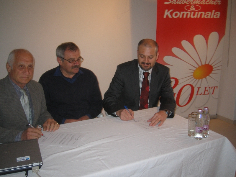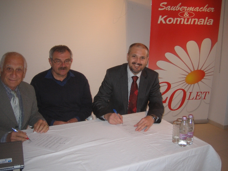 Petanjci, 19. aprila 2012 – Podjetje Saubermacher Komunala iz Murske Sobote je postalo podpornik projekta Ustanove dr. Šiftarjeva fundacija Vanekov ekološki četrtek-VEČ. Direktor podjetja Drago Dervarič in predsedsednik uprave fundacije Ernest Ebenšpanger sta pred začetkom druge letošnje ekološke debate podpisala sponzorsko pogodbo, kar projektu odpira nove možnosti pri izboru tem in osveščanju javnosti. Prav zaradi poudarjenega osveščanja v skrbi za okolje po besedah direktorja Draga Dervariča Saubermacher Komunala vidi v tem projektu nove sinergije, zato ga je  finančno podprla. Za zaupanje in podporo se je sponzorju projekta zahvalil tudi programski vodja projekta in predsednik Zveze ekoloških gibanj Slovenije Karel Lipič.