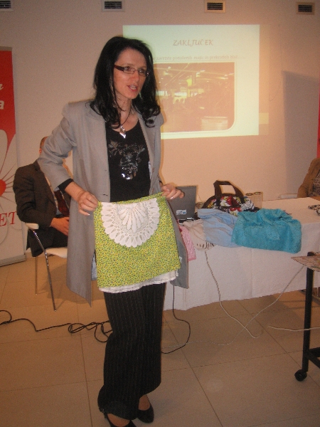 Soboška Saubermacher Komunala je eden od dveh večjih zbiralcev odpadnega tekstila v Sloveniji. V dvanajstih pomurskih občinah so ga začeli ločeno zbirati leta 2008. Prvo leto so zbrali 14 ton, lani že 39, letos pa bo zbranega odpadnega tekstila predvidoma že 43 ton. Kljub očitnemu porastu ločeno zbranih količin odpadnega tekstila pa še vedno preveč tovrstnega odpada konča med mešanimi odpadki. Večino zbranega tekstila gre v predelavo, in sicer deloma za reciklirana oblačila ali v snovno predelavo, naprimer v krpe za čiščenje ali razne polizdelke (polnila za vzmetnice, izolacijski material, geotekstil). Vse to s pri nas zbranimi tekstilnimi odpadki naredijo drugje, saj se s tem v Pomurju žal nihče ne ukvarja, je poudaril direktor Drago Dervarič, ki je prepričan, da je to področje, ki okolju ponuja precej novih podjetniških priložnosti. Pritrdila mu je podjetnica Zdenka Benko, ki je prepričana, da je v Pomurju, ki slovi po tekstilnem znanju, res veliko neizkoriščenega potenciala, s katerim bi se ob ustreznih razvojnih spodbudah dalo razviti in ustvariti prepoznavno blagovno znamo iz ponovno uporabljenega tekstila. V tem tudi sama vidi podjetniški izziv, za kar je prve spodbude dobila prav pri dr. Marinki Vovk, ki ji je v okviru projektov socialnega podjetništva v Rogaški Slatini že uspelo narediti prve konkretne korake. Vovkova je prepričana, da pomeni ponovna uporaba odvrženega tekstila veliko ekološko razbremenitev okolja, saj je tekstilna industrija eden največjih onesnaževalcev, s predelavo in ponovno uporabo tekstilnih odpadkov pa bi lahko v Slooveniji ustvarili tudi veliko novih delovnih mest. Za zgled je izpostavila Skandinavijo, kjer so uspeli razviti lokalno podjetništvo na področju ponovne uporabe tekstilnih odpadkov. Razvili so tudi blagovne znamke oblačil in modnih dodatkov narejenih iz odpadkov, ki so izjemno priljubljene zlasti med mladimi ekološko osveščenimi kupci. Ker se ekološko osveščeni ljudje tudi pri nas vedno bolj izogibajo cenenim in ekološko spornim tekstilnim izdelkom narejenim na Kitajskem, je razgibana razprava izzvenela v prepričanje, da je prav v pomurski regiji največ sinergij za poslovno priložnost, ki jo ponujajo tekstilni odpadki. Samo povezati je potrebno vse razpoložljive sinergije, odmisliti splošno veljano prepričanje, da se pri nas itak nič ne splača, ter zbrati pogum in se lotiti posla.