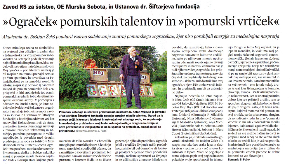 “Ograček” pomurskih talentov in “pomurski vrtiček” (Vestnik)