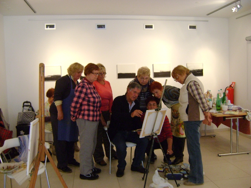 Petanjci,16. oktober; Ustanova dr. Šiftarjeva fundacija in Društvo upokojencev v občini Tišina sta organizirala za člane likovne sekcije društva in druge zainteresirane slikarsko delavnico v Vrtu na Petanjcih. To je bila prva tovrstna prireditev Ustanove in prva v Vrtu. Celodnevno delavnico je vodil znani slovenski slikar Janez Kovačič, ki je tudi predstavil del svojega slikarskega opusa in monografijo, ki je izšla pred kratkim, ob njegovi 70. obletnici. Več kot deset udeleženk in udeležencev delavnice je  izrazilo zadovoljstvo s potekom delavnice in željo, da bi ji čim prej sledile nove, pod vodstvom slikarja Kovačiča; konkretni rezultat pa so njihova dela, nastala v času delavnice.