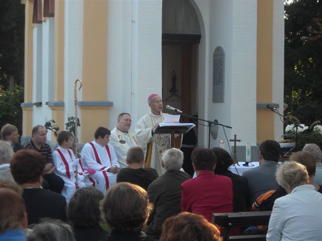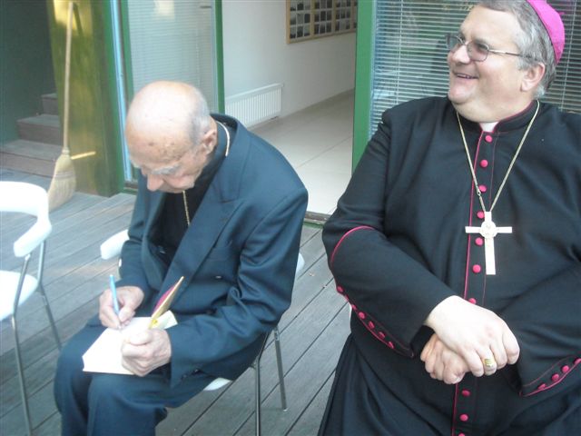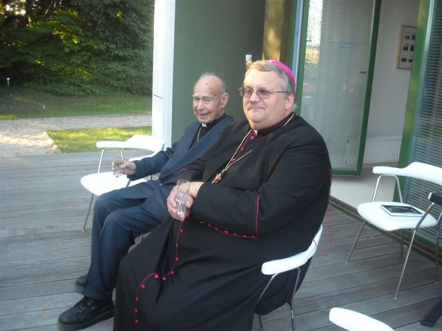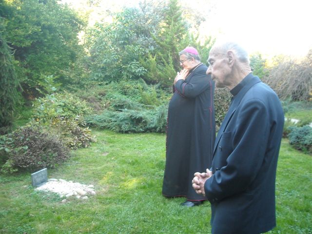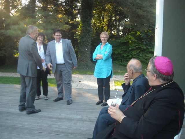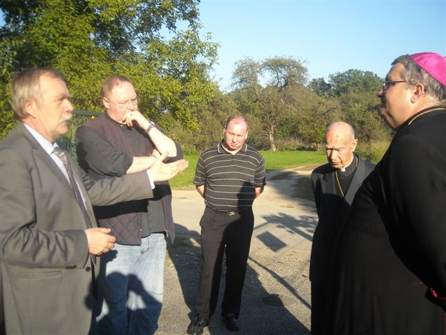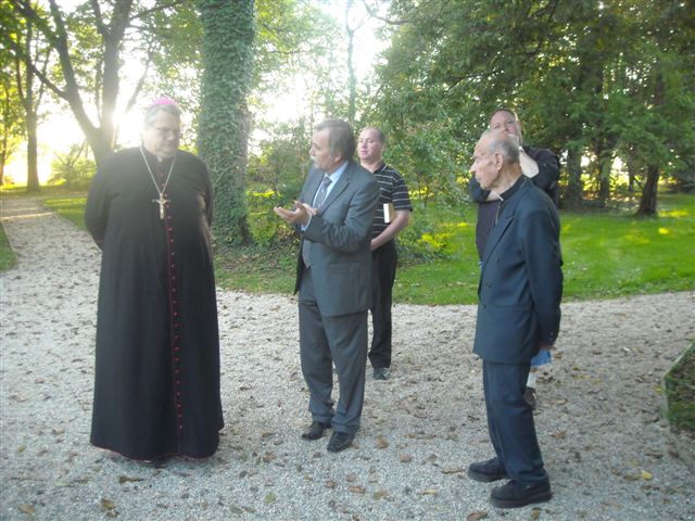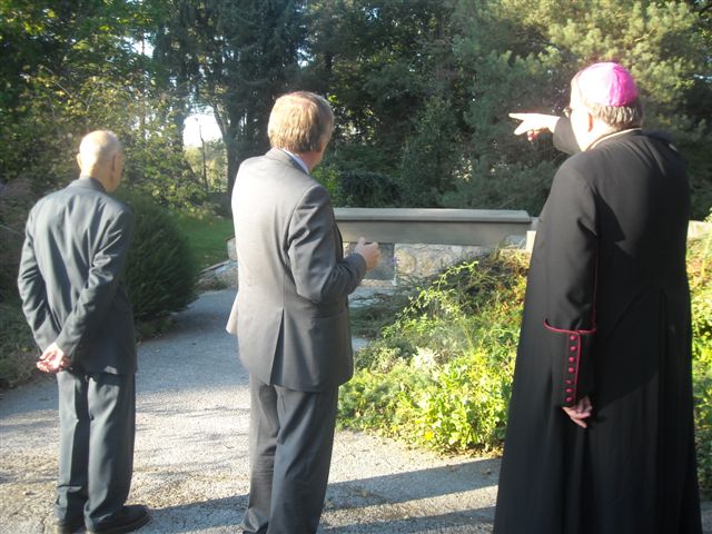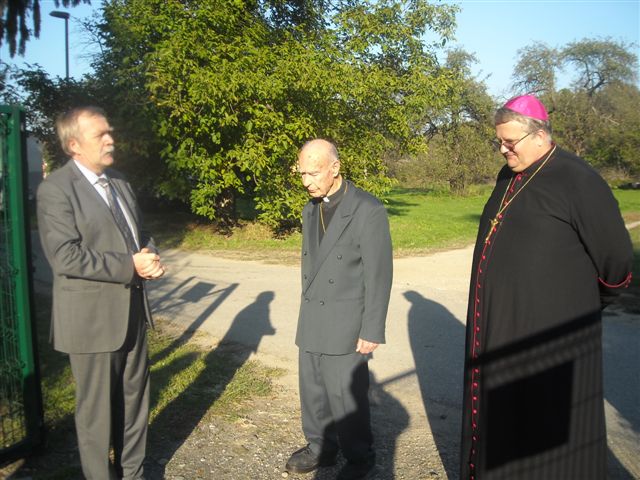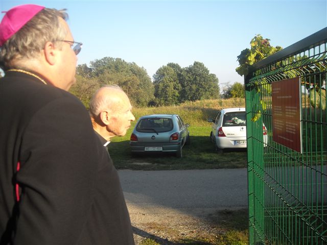 Petanjci, 6.oktober – po cerkveni svečanosti pred kapelico pred Vrtom na Petanjcih v čast njene uspešno izvedene celovite prenove sta soboški škof dr. Peter Štumpf in upokojeni mariborski pomožni škof dr.Jožef Smej obiskala še tudi Vrt spominov in tovarištva. Spremljal ju je upravitelj tišinske župnije Boštjan Čeh, gostom pa se je pridružil tudi župan občine Tišina Franc Horvat.Predsednik in podpredsednik uprave sta goste ob krajšem ogledu Vrta seznanila z zgodovino Vrta in dejavnostjo Ustanove ter nekaterimi znamenitostmi Vrta.Dr.Smej se je posebej razveselil, da drevesi, ki sta ju zasadila pred leti skupaj z evangeličanskim škofom mag. Gezo Ernišo v spomin na znamenita in zaslužna Prekmurca, soimenjaka Kuzmiča, še vedno lepo uspevata.Predstavnika Ustanove sta se ob tej priložnosti s škofom dr.Štumpfom pogovarjala tudi o pripravah razgovora v okviru Vanekovih ekoloških večerov, na katerem bosta gosta škof dr.Štumpf in šlof mag. Erniša; predvidoma v novembru.
