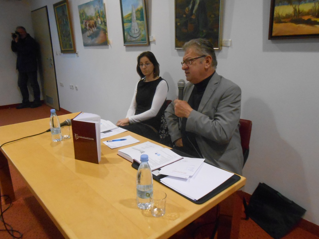 Murska Sobota, 17. marec 2016 – Na odlično obiskanem dogodku, so v Pomurski in študijski knjižnici predstavili zbornik Protestantizem včeraj, danes in jutri. Na predstavitev je prišlo nekaj uglednih gostov: škof Evangeličanske cerkve v Sloveniji, Geza Filo, častni škof Geza Erniša, predsednik Slovenskega protestanske gruštva Primož Trubar Viktor Žakelj in nekateri avtorji referatov. V imenu knjižnice je zbranme nagovorila dr. Klaudija Sedar, tudi referantka na simpoziju. V imenu Ustanove dr. Šiftarjeve fundacije je zbrane pozdravil predsednik Uprave Ernest Ebenšpanger, podpredsednik Marjan Šiftar pa je napovedal nekaj letošnjih pomembnih dogodkov, tudi povezanih s praznovanji 20. obletnice ustanovitve fundacije.