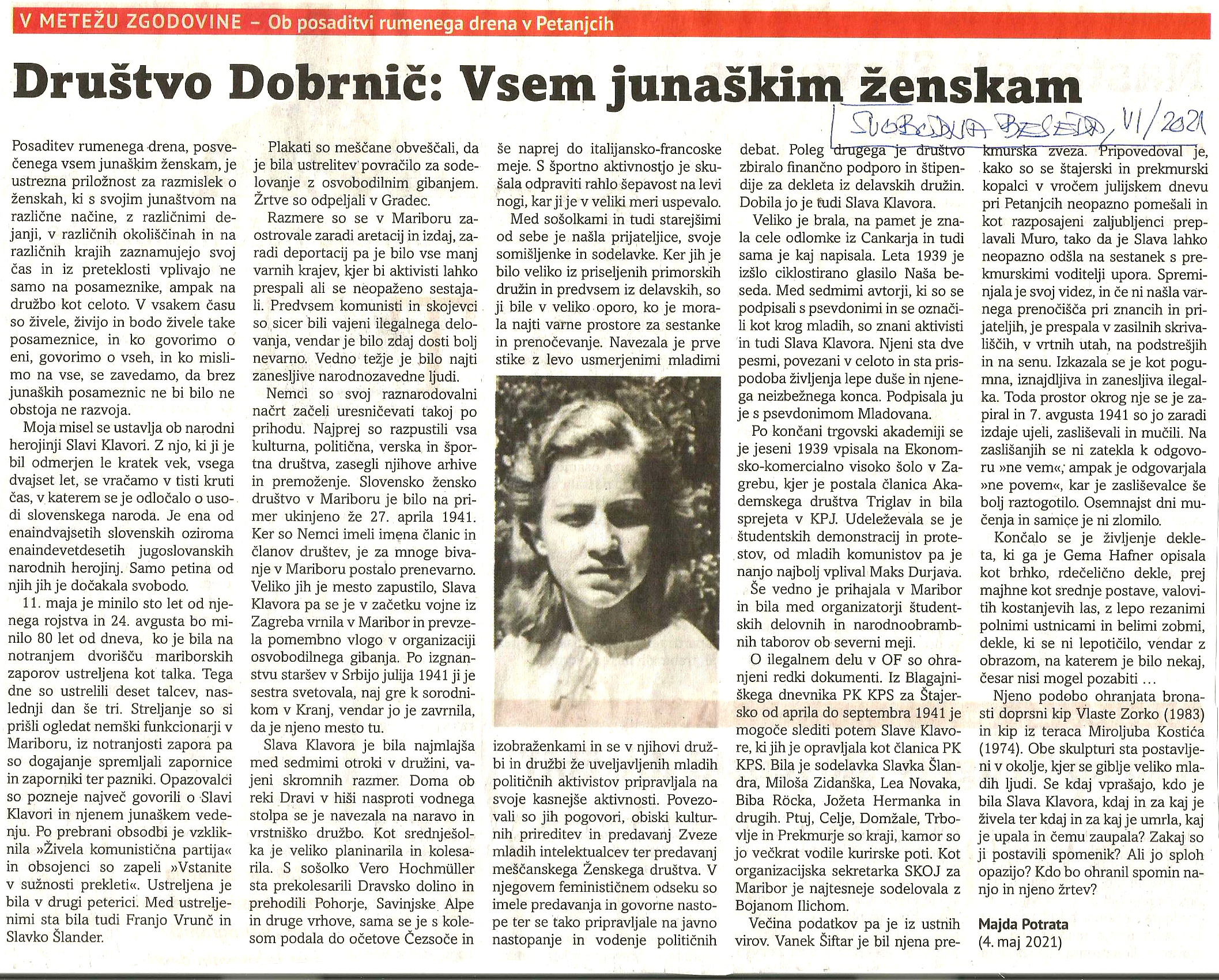 Društvo Dobrnič: Vsem junaškim ženskam (Svobodna beseda)