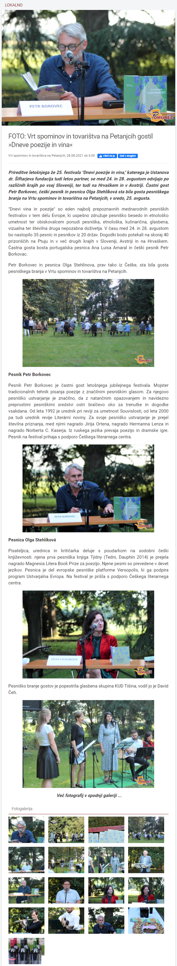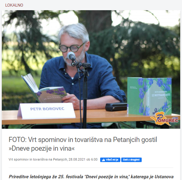 Vrt spominov in tovarištva na Petanjcih gostil “Dneve poezije in vina” (pomurec.com)