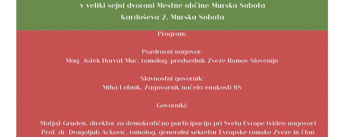 – ob 18.00: okrogla miza o položaju in perspektivah, pričakovanjih Romov v prihodnjem razvoju in življenju v EU/Evropi; v veliki sejni dvorani Mestne občine Murska Sobota, Kardoševa 2