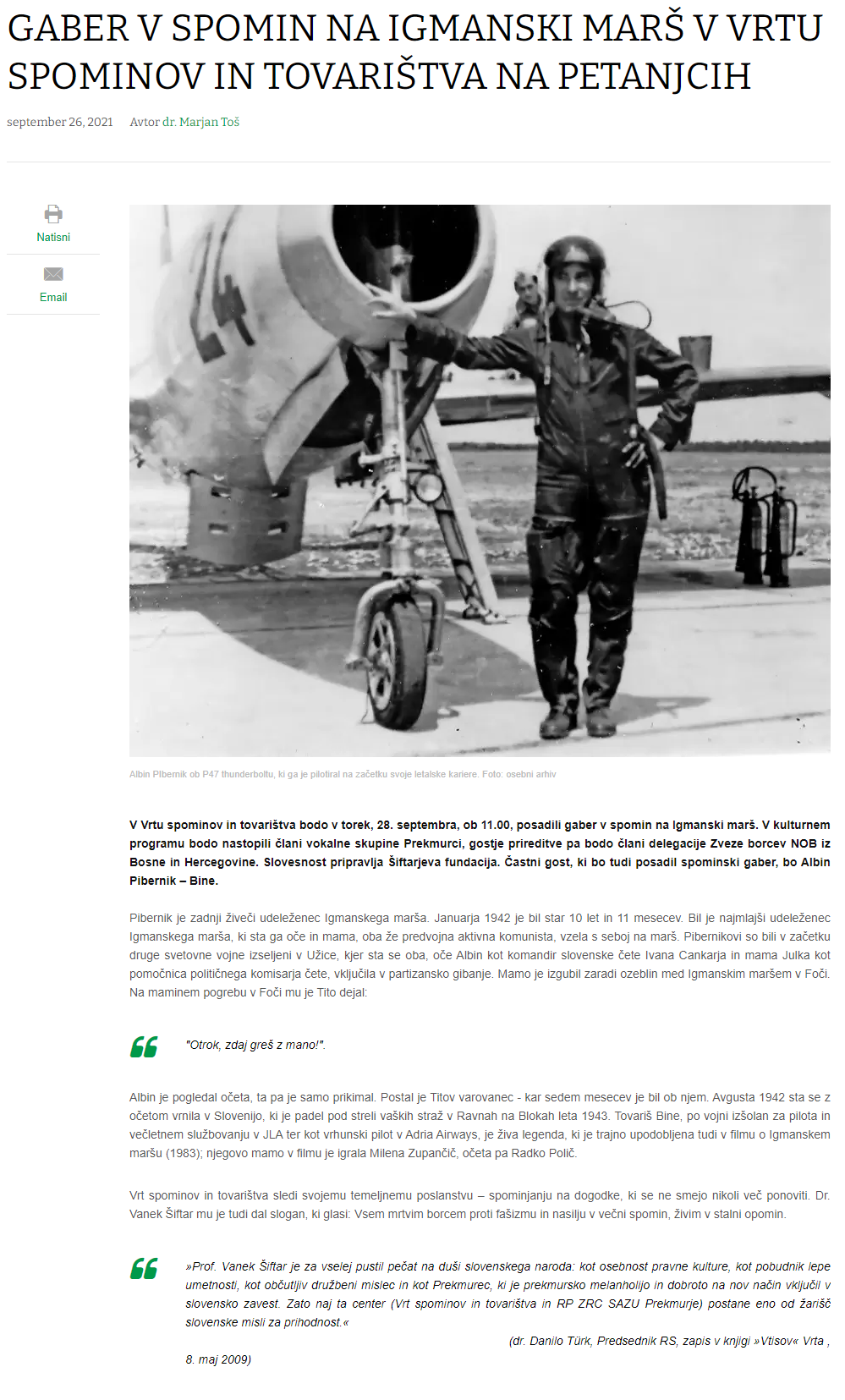 Gaber v pomin na Igmanski Marš v Vrtu spominov in tovarištva na Petanjcih (Vestnik)