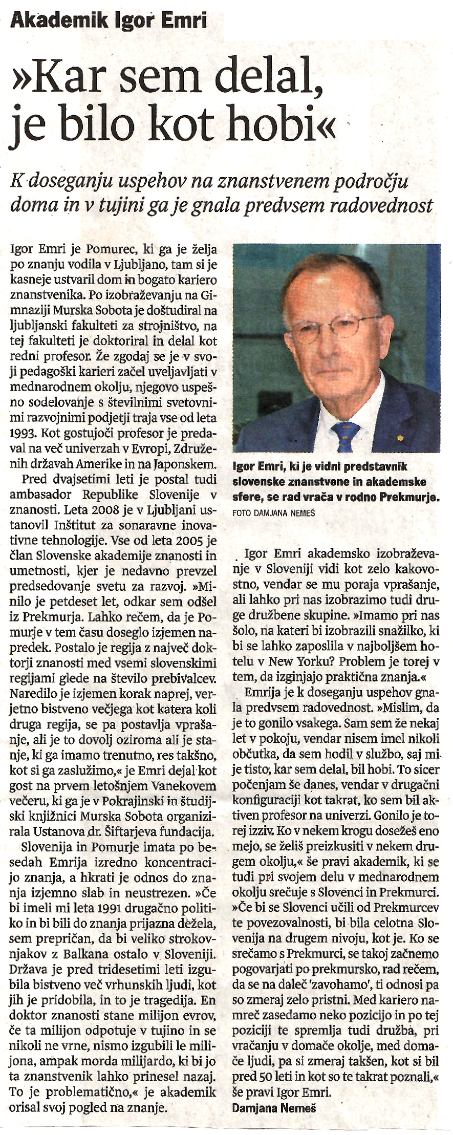 Akademik Igor Emri: “Kar sem delal, je bilo kot hobi” (Vestnik)