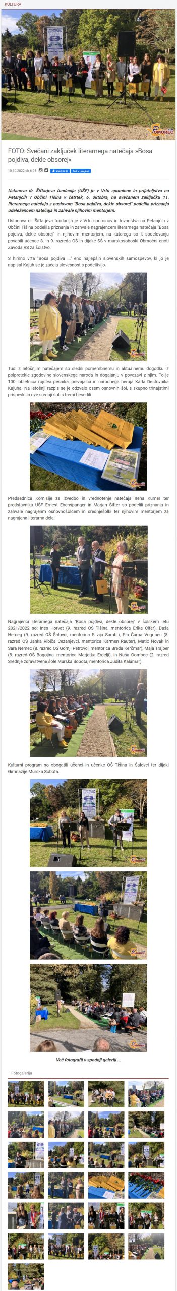 Svečani zaključek literarnega natečaja »Bosa pojdiva, dekle obsorej« (pomurec.com)