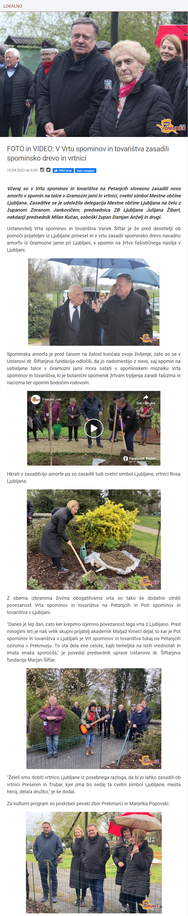 V Vrtu spominov in tovarištva zasadili spominsko drevo in vrtnici (pomurec.com)