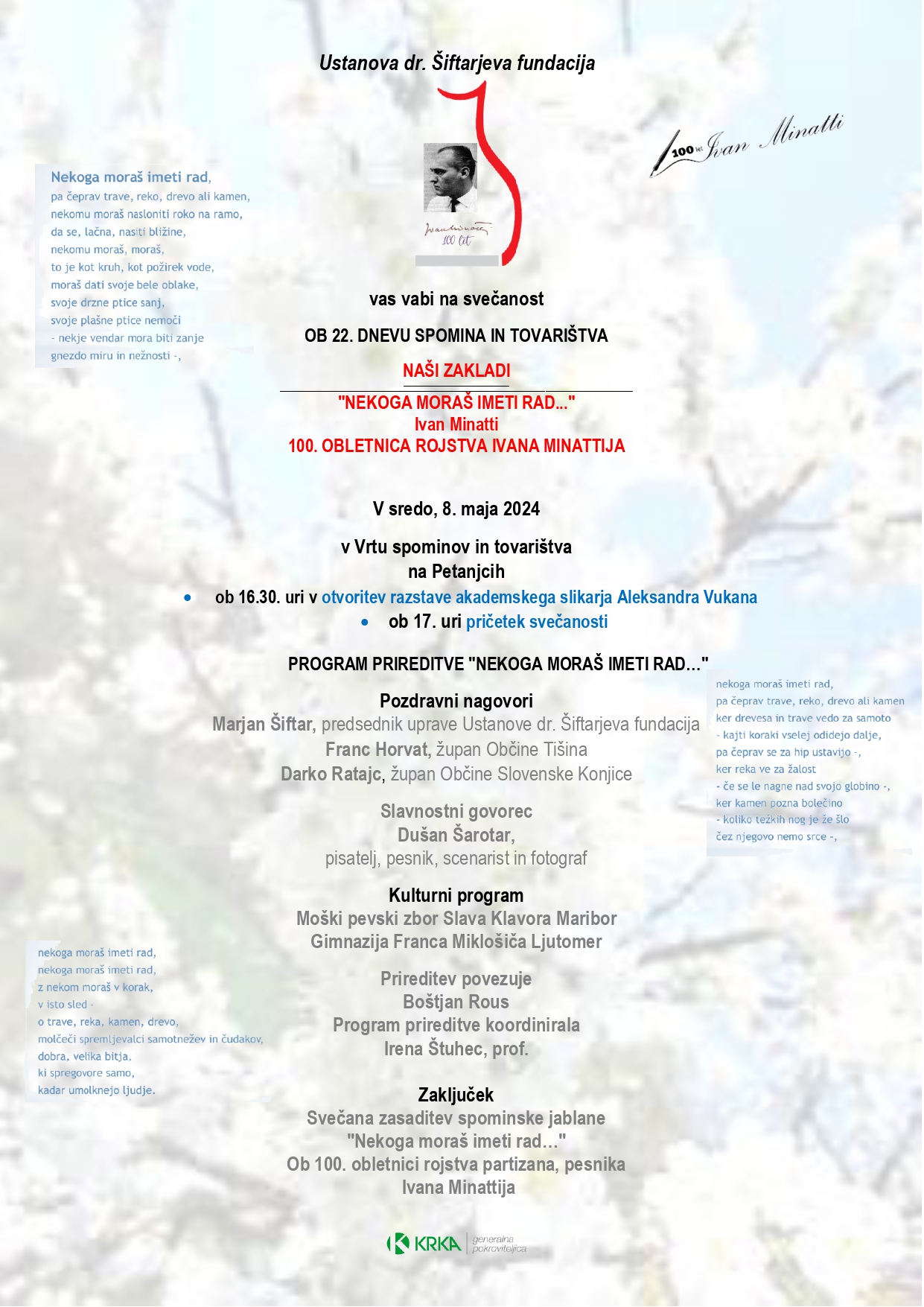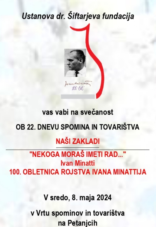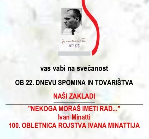 Ob 100. obletnici rojstva se bomo tudi v Vrtu spominov in tovarištva poklonili pesniku Ivanu Minattiju z izbranim programom ob 17. uri.