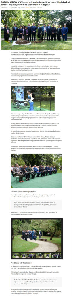 V Vrtu spominov in tovarištva zasadili ginko kot simbol prijateljstva med Slovenijo in Kitajsko (sobotainfo.com)
