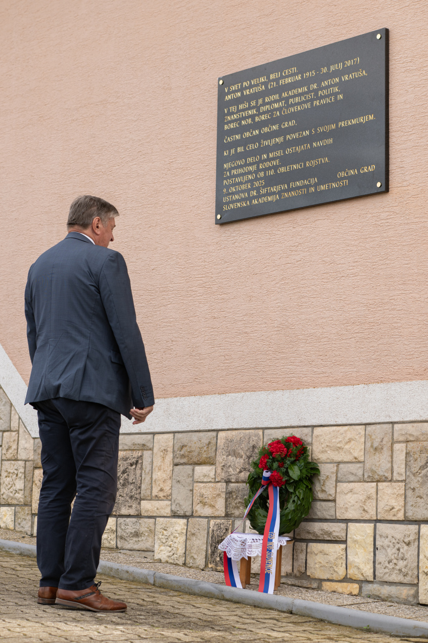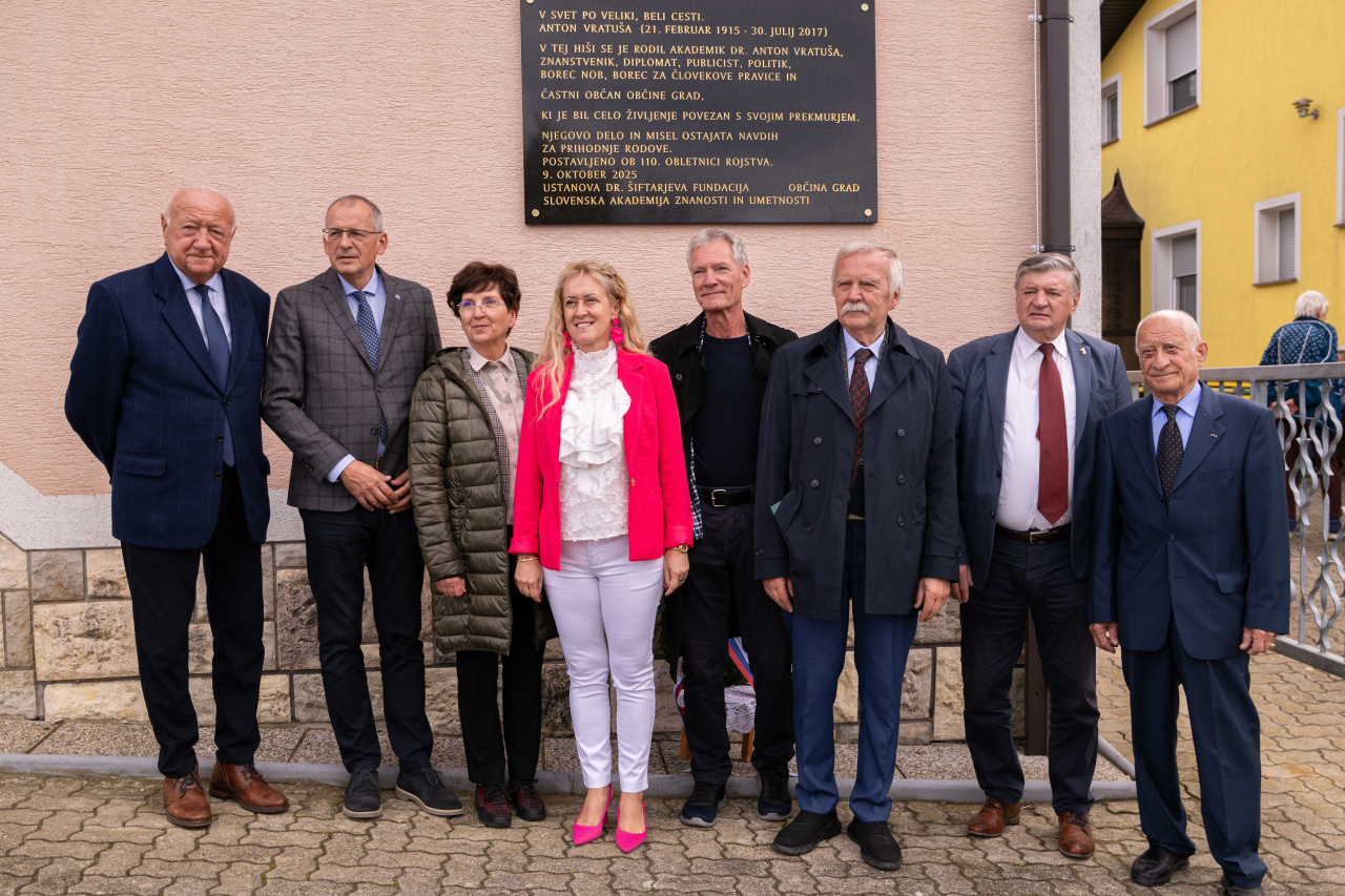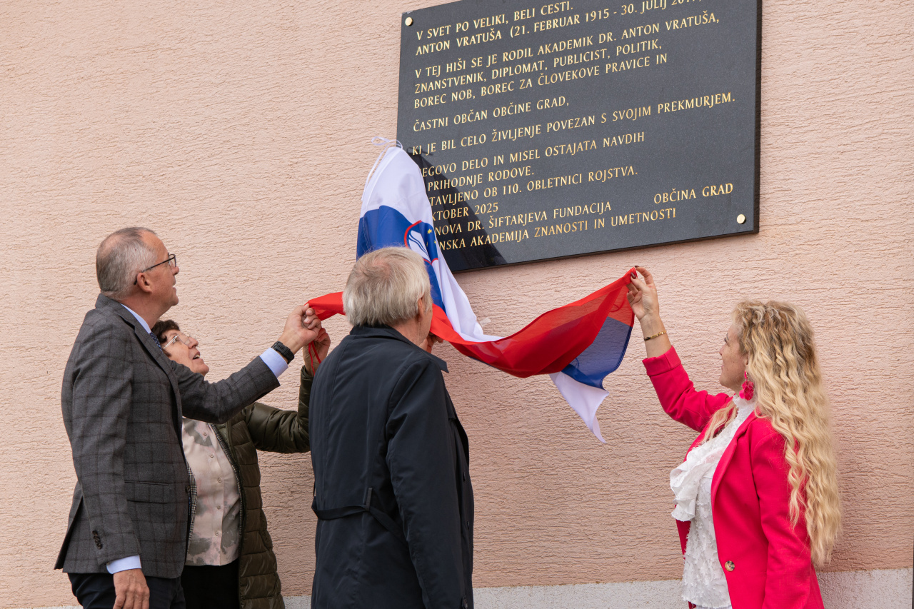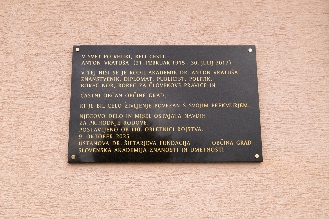 Občina Grad, Slovenska akademija znanosti in umetnosti ter Ustanova dr. Šiftarjeva fundacija so v četrtek, 9. oktobra 2025, ob 110. obletnici rojstva dr. Antona Vratuše svečano odkrili spominsko ploščo v Dolnjih Slavečih, kjer je bil akademik rojen.